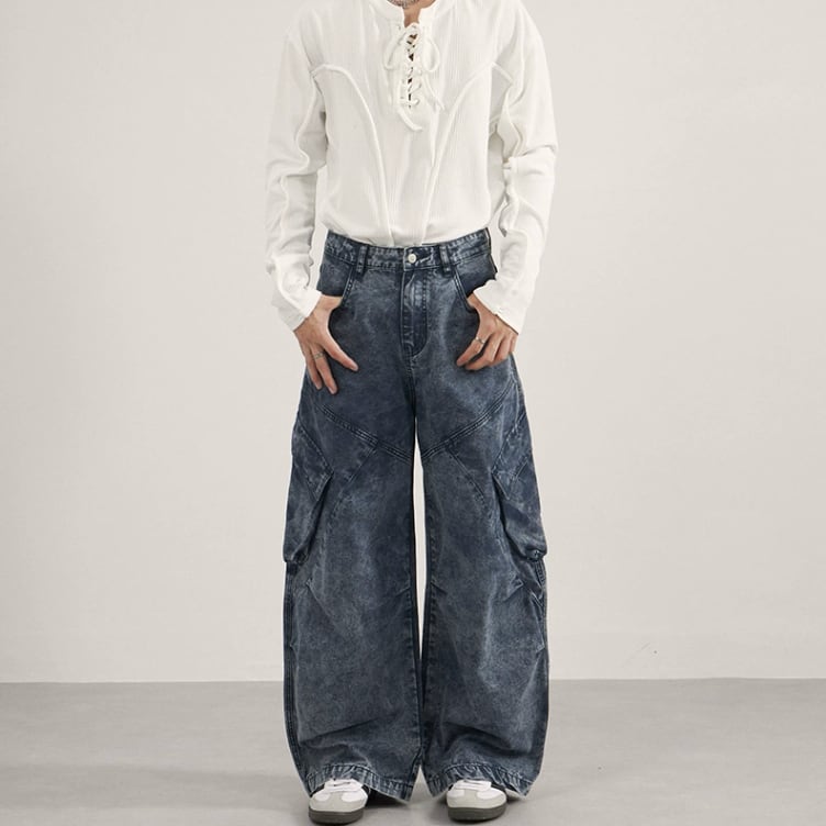 Loose cargo denim pants 0012