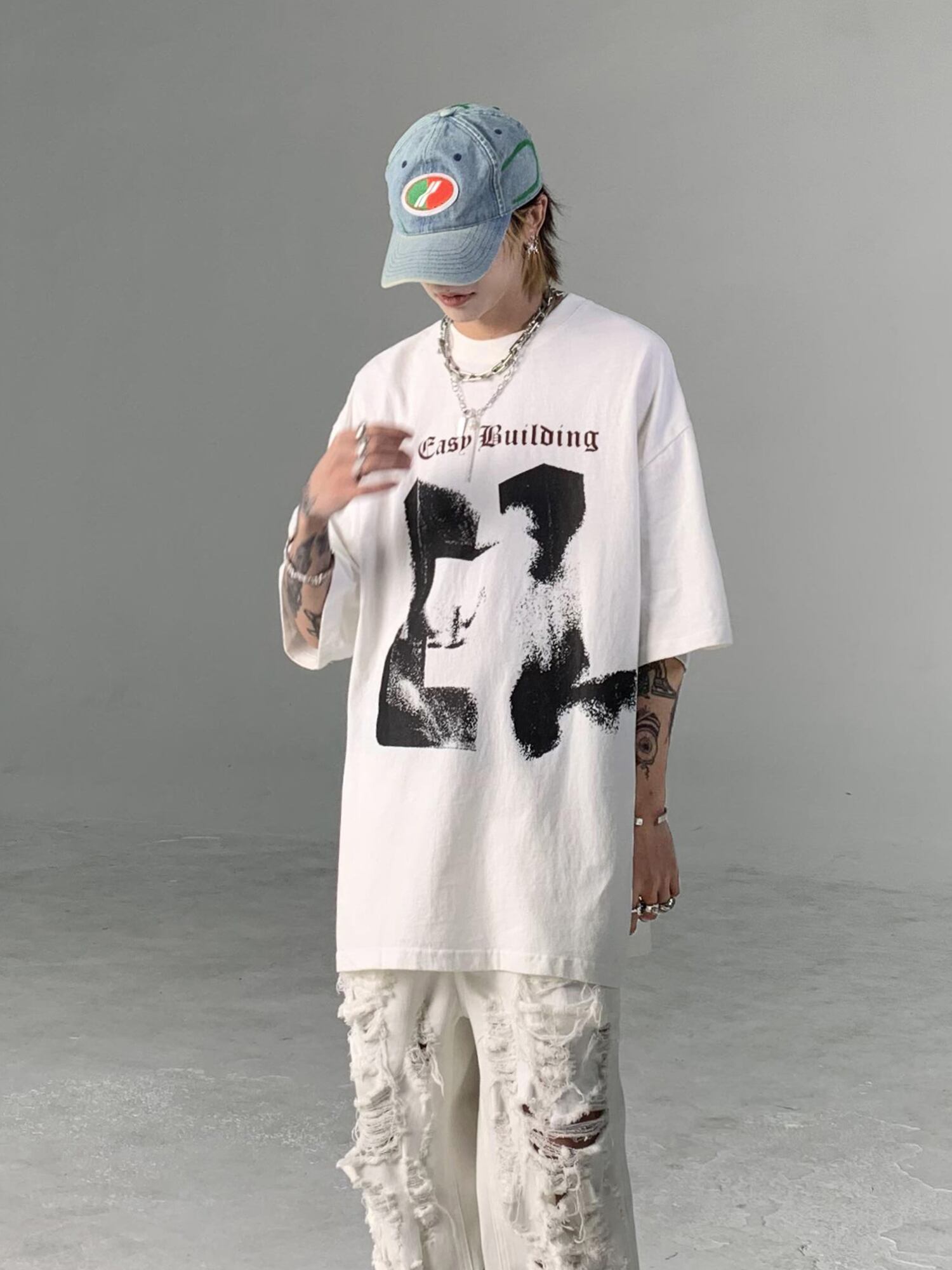 Street Gothic Letter Print Short Sleeve T-Shirt 0004