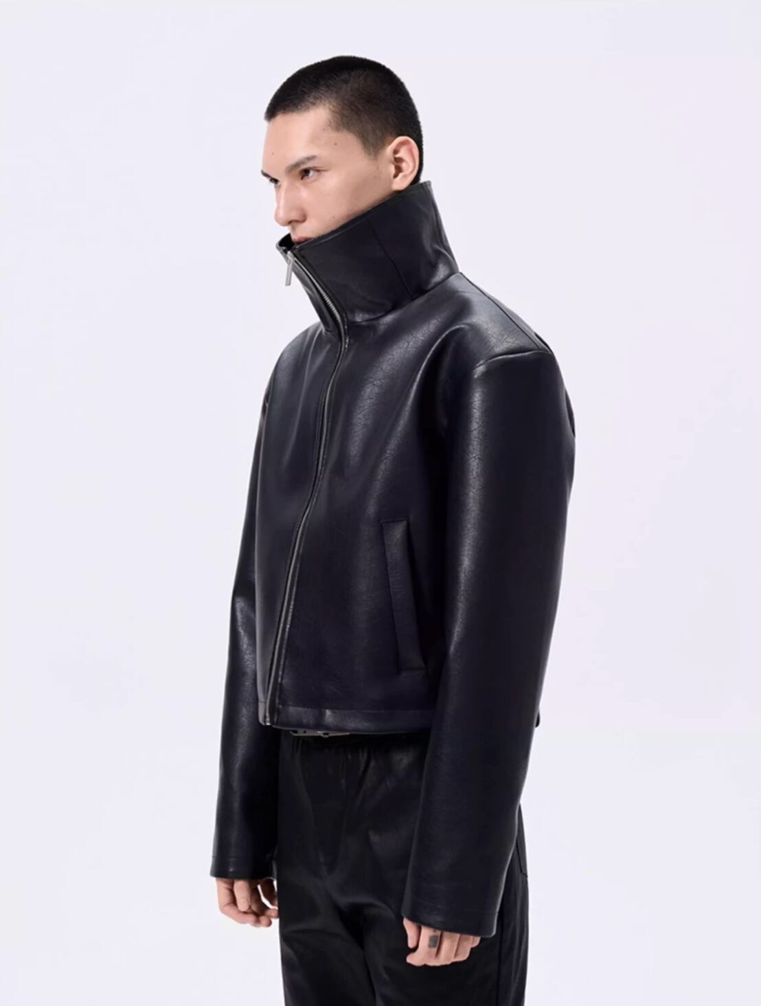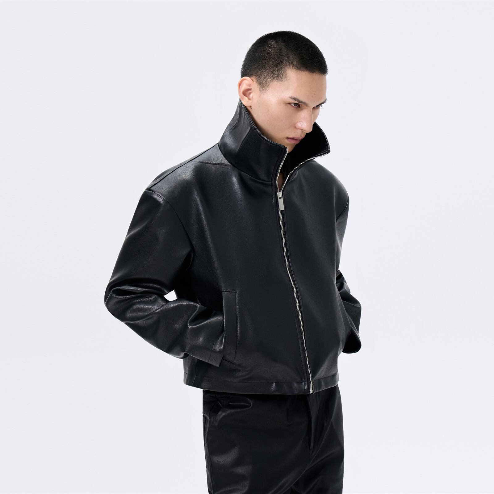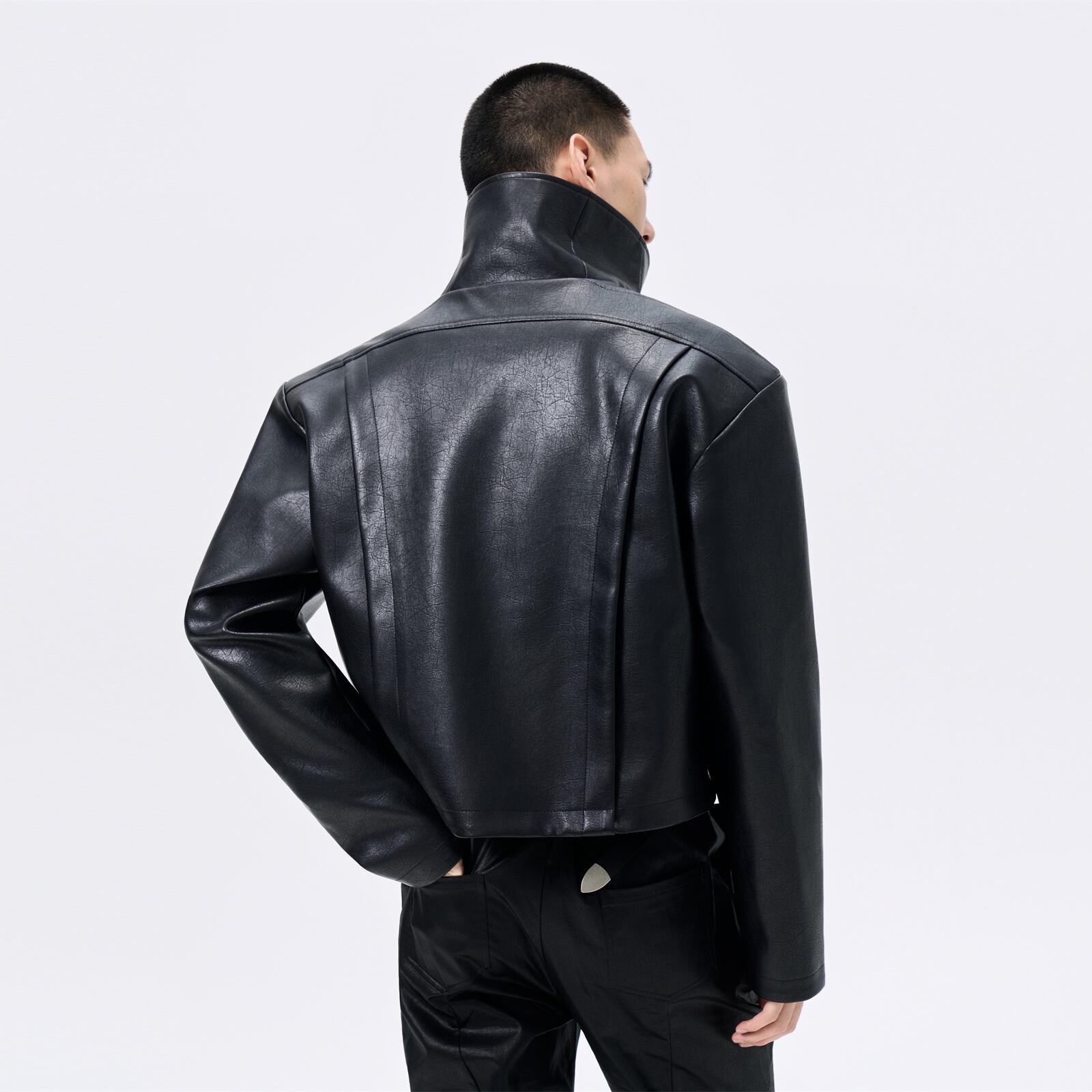 Stand Collar Short PU Leather Jacket 0016