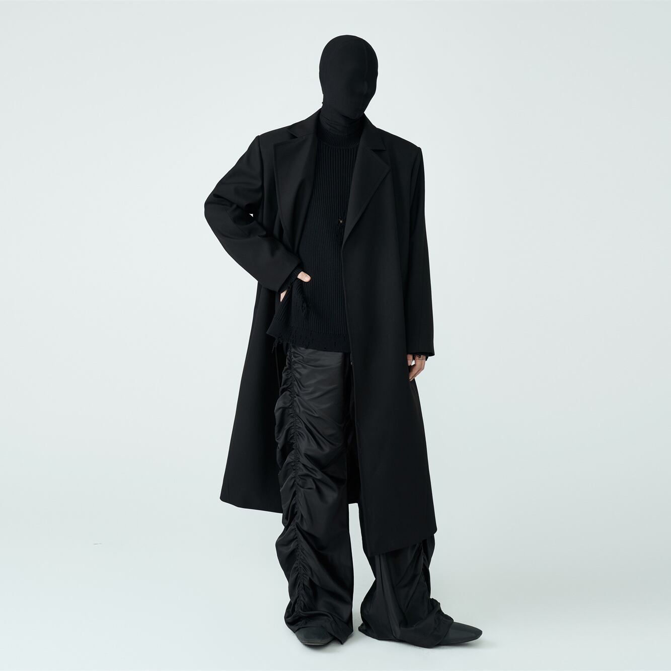Black wool trench coat 0016