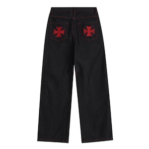 Embroidered Button Denim Pants 0001