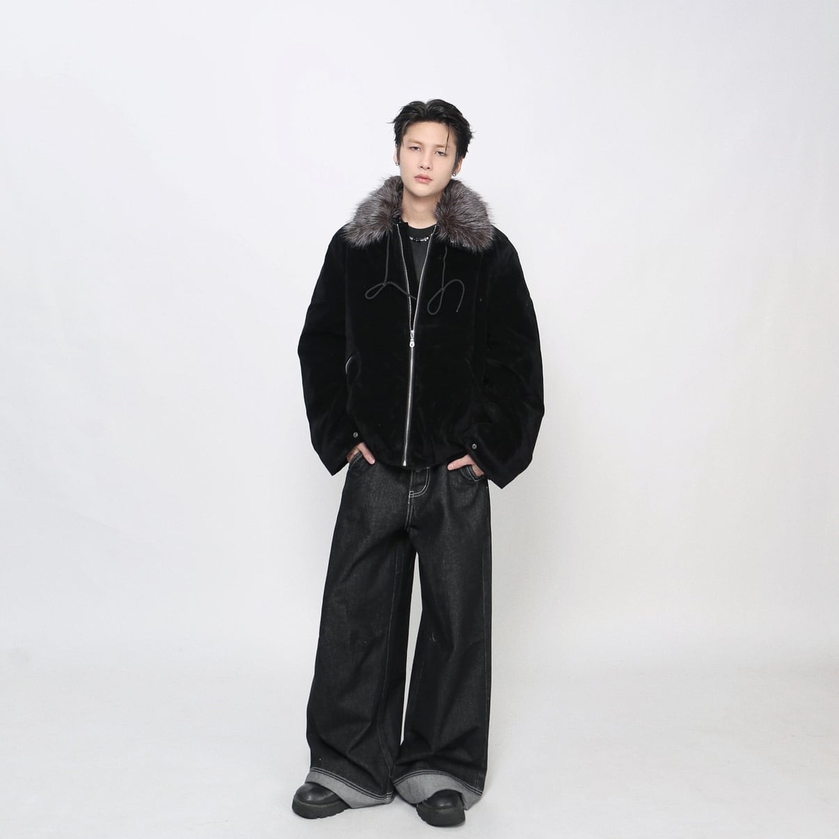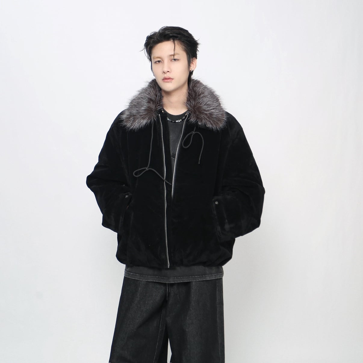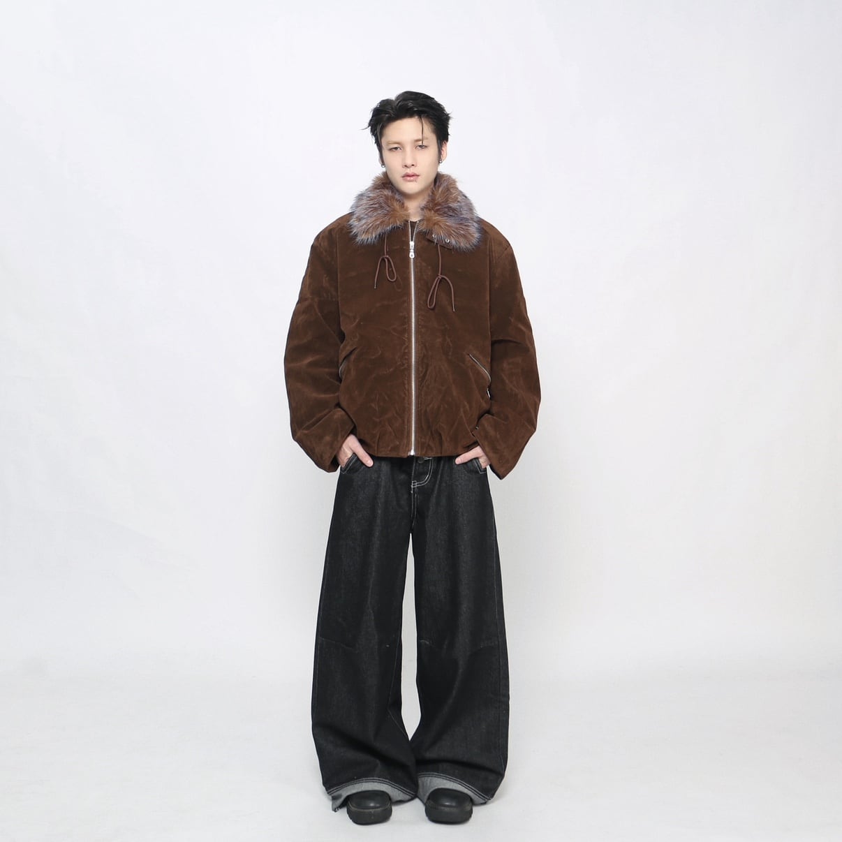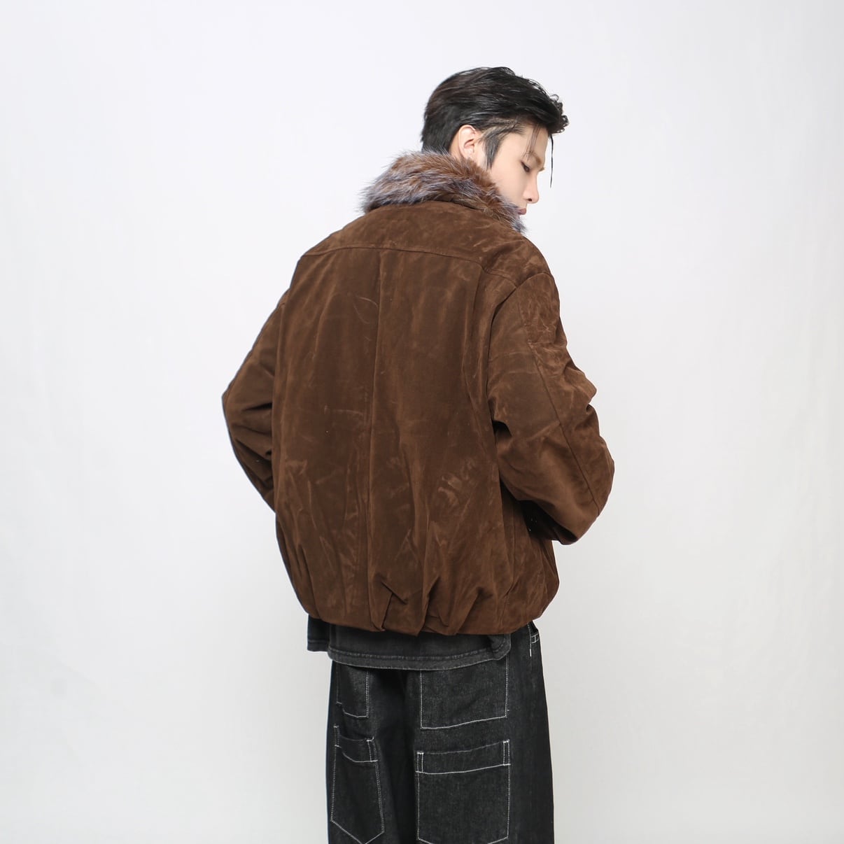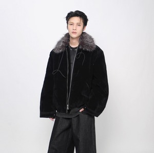 Big fur collar suede jacket 0003
