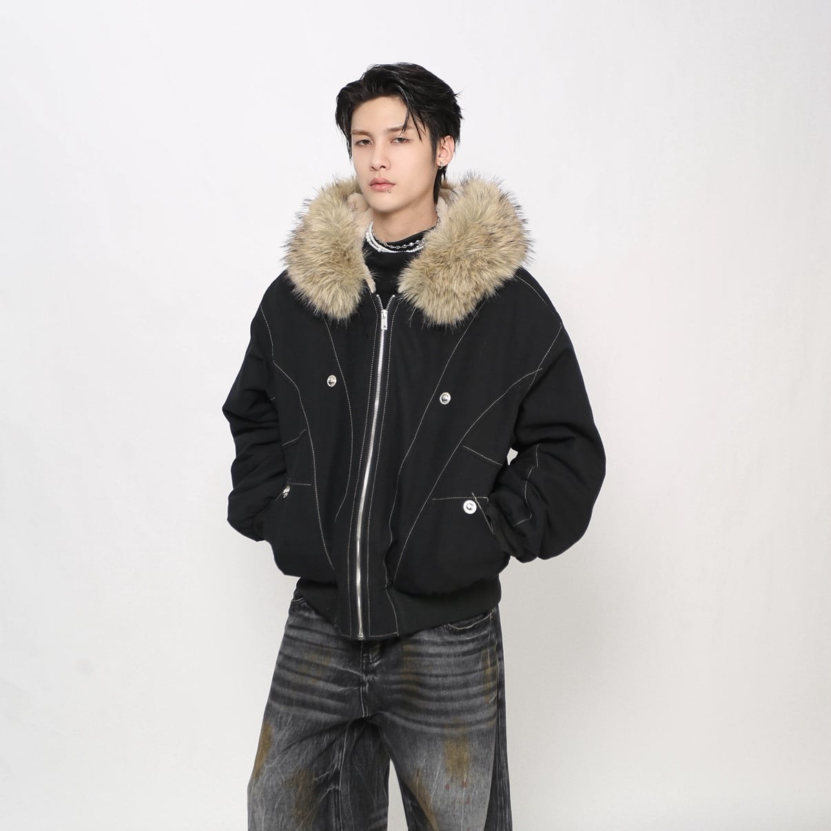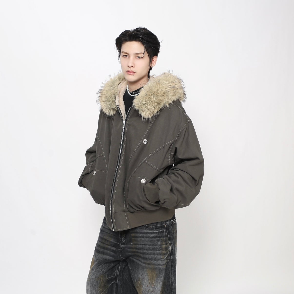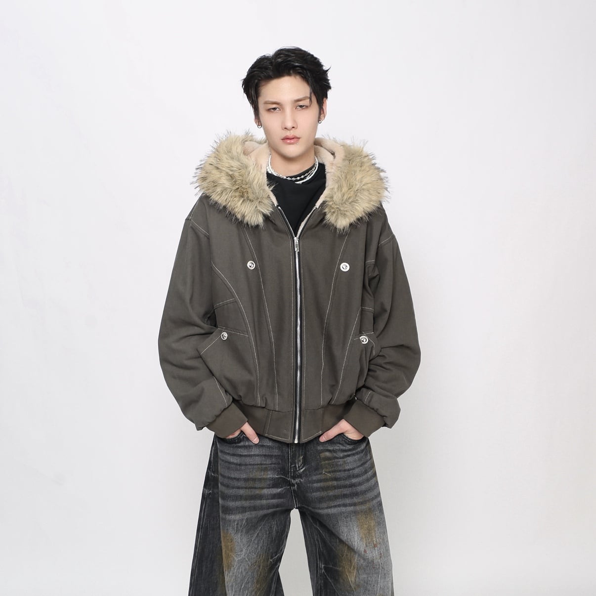 Heavy Deconstructed Fur Collar Hoodie Jacket 0003