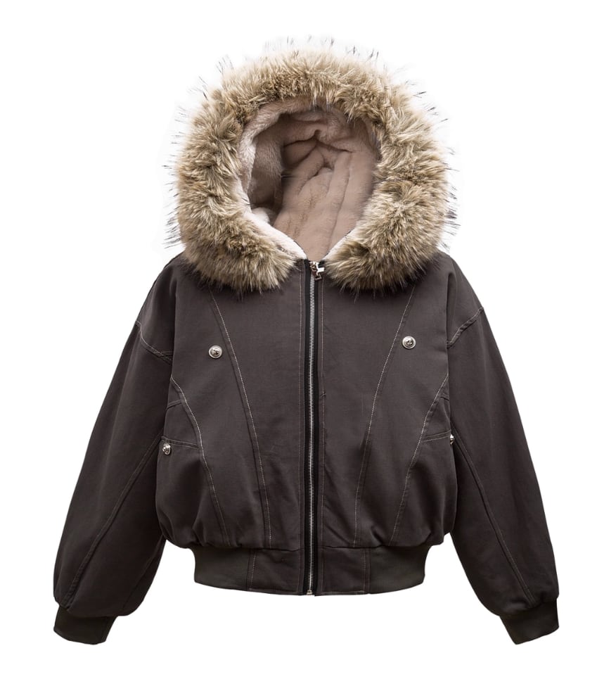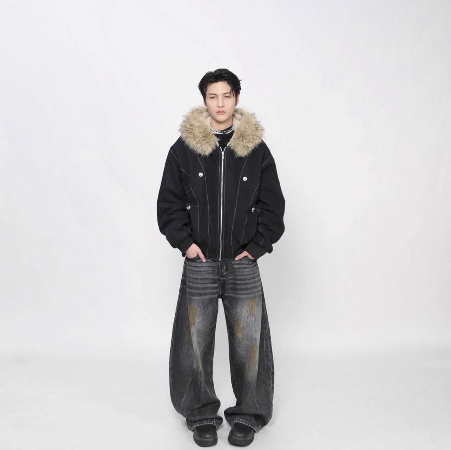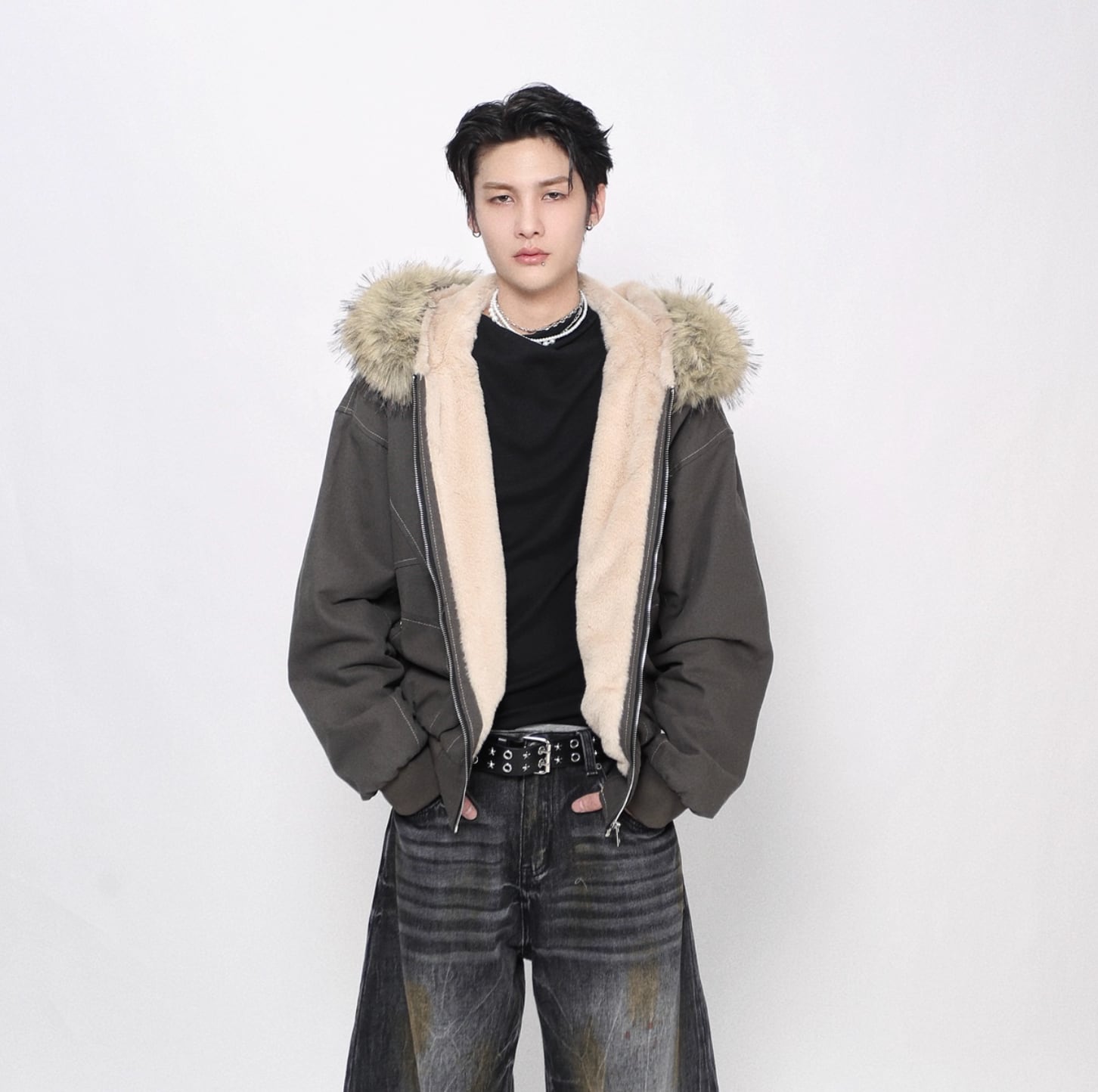 Heavy Deconstructed Fur Collar Hoodie Jacket 0003
