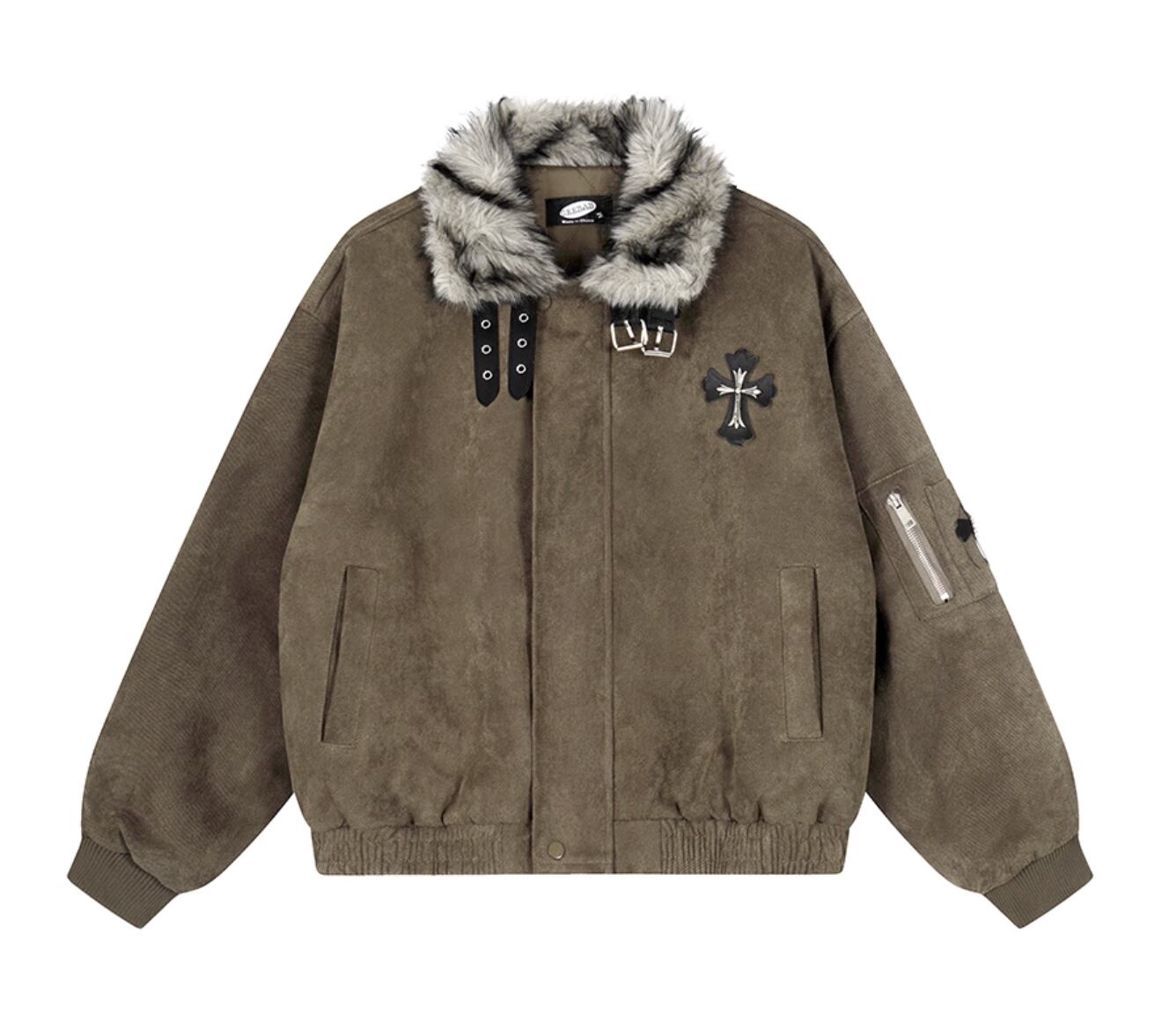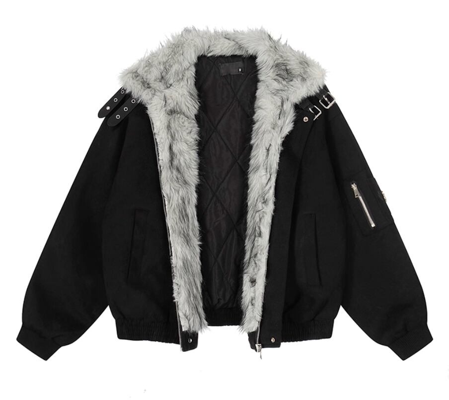Stand collar button fur collar jacket 0005