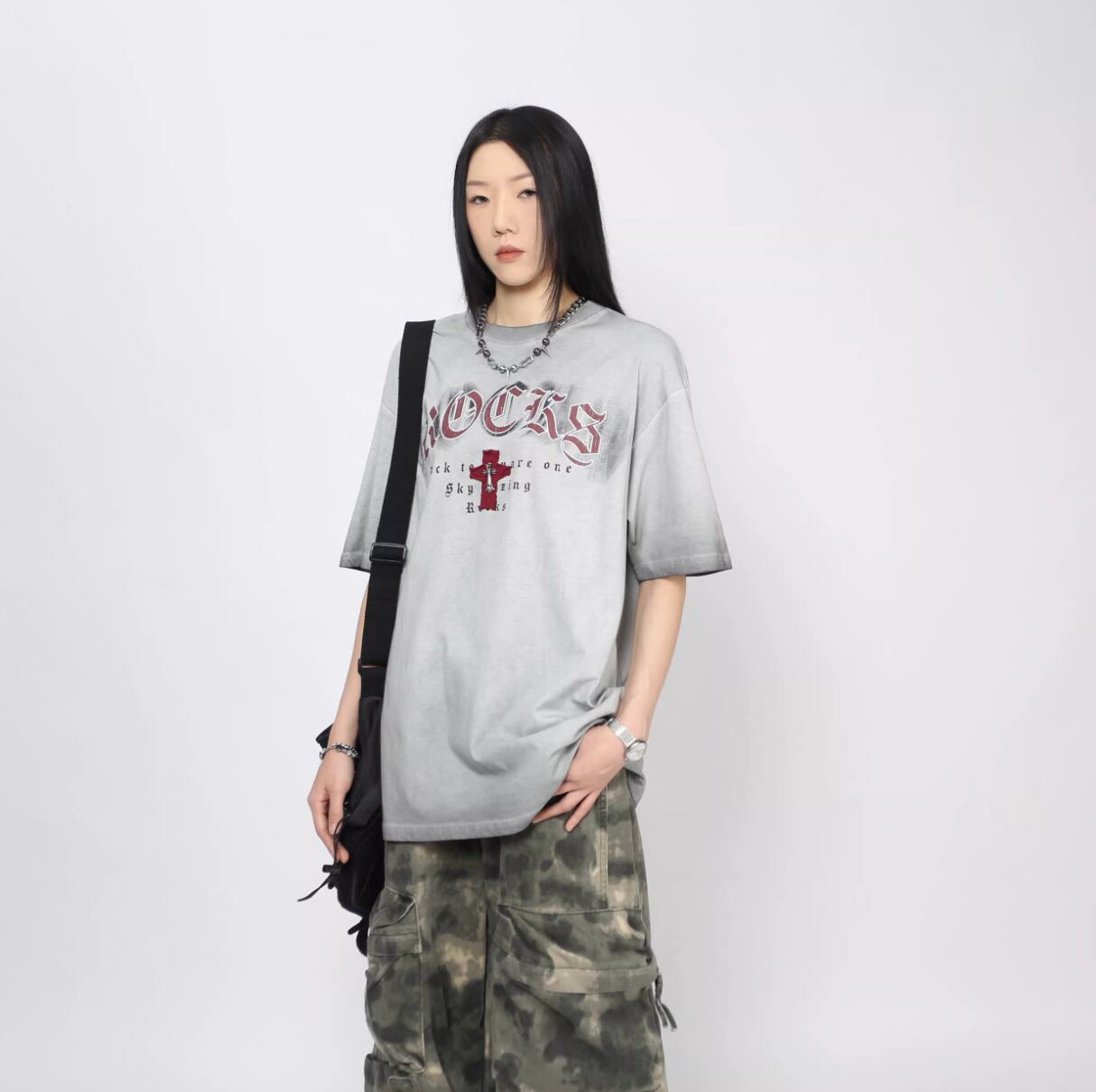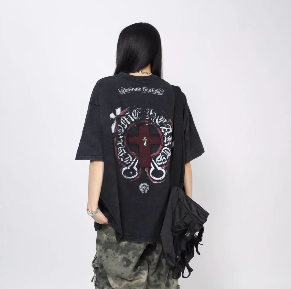 Cross embroidered short-sleeved T-shirt 0003