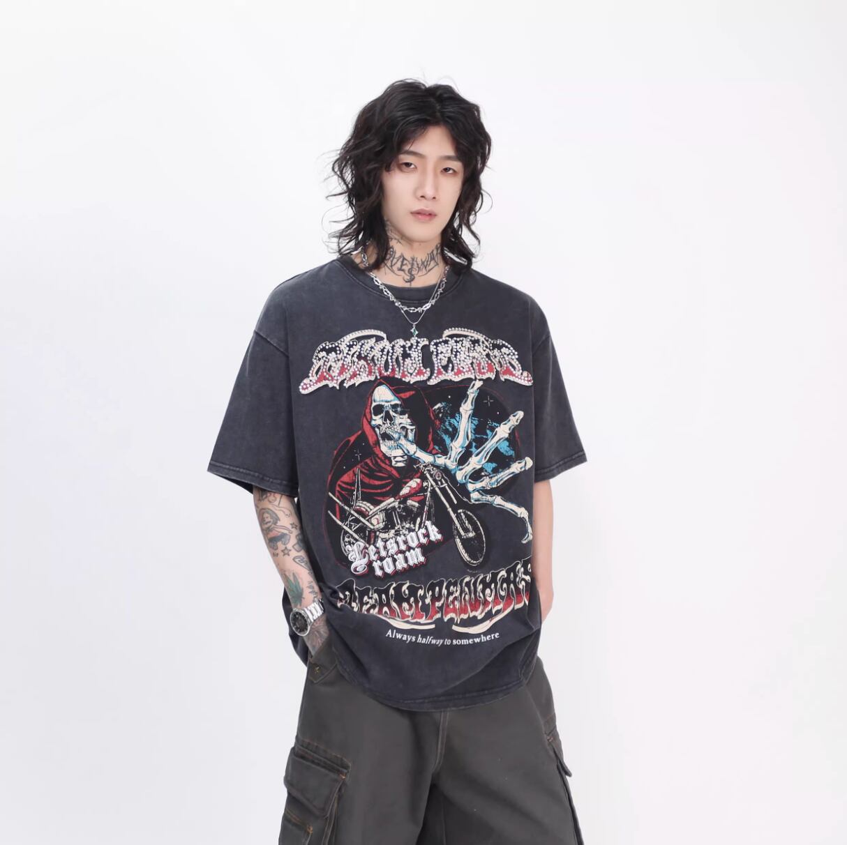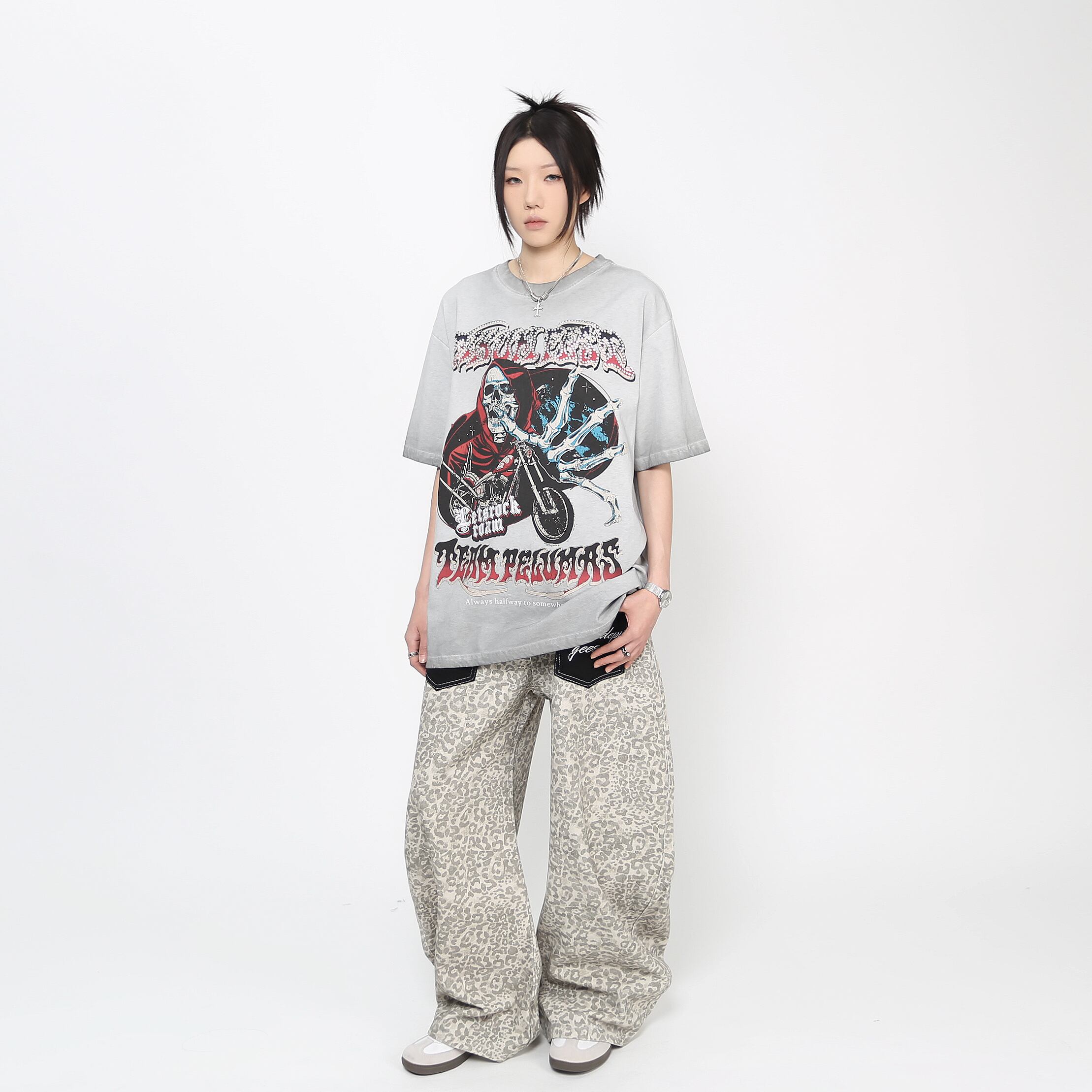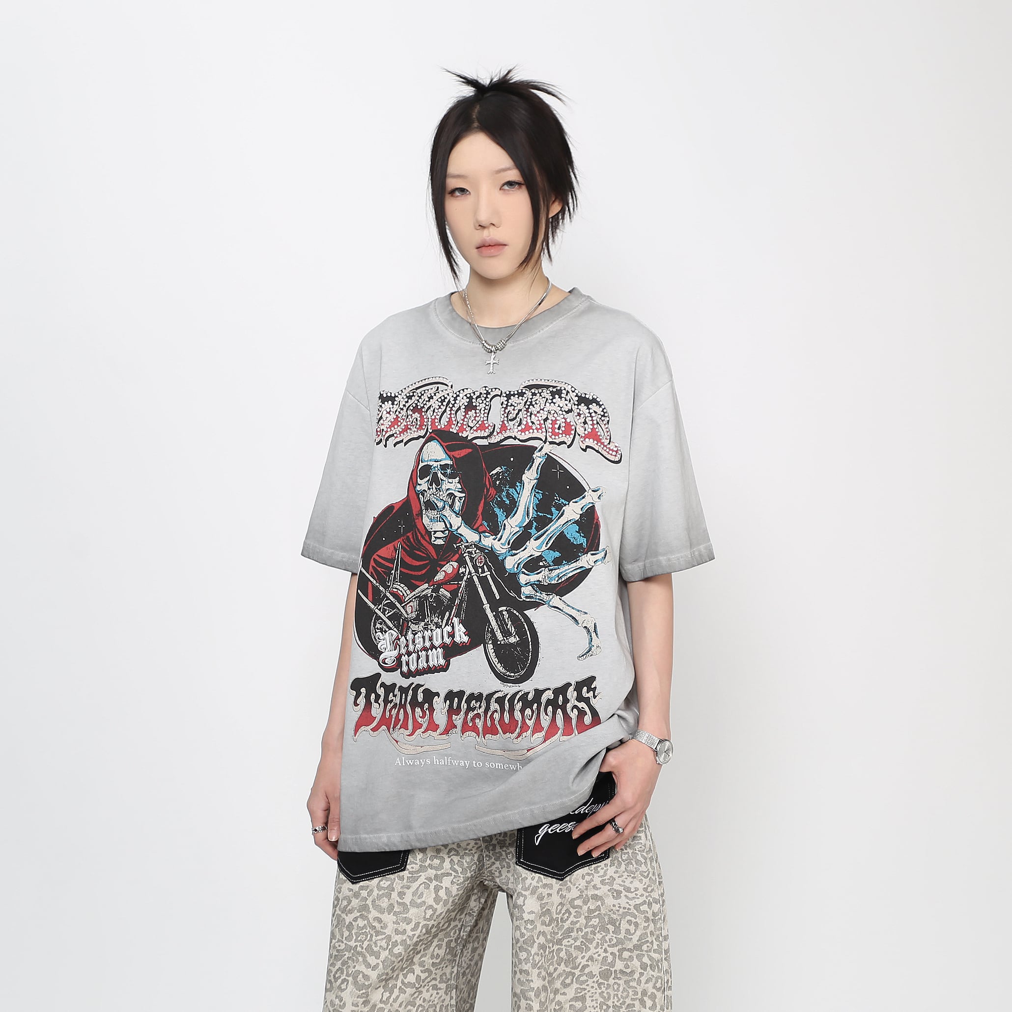 Diamond Skull Distressed Short Sleeve T-Shirt 0003
