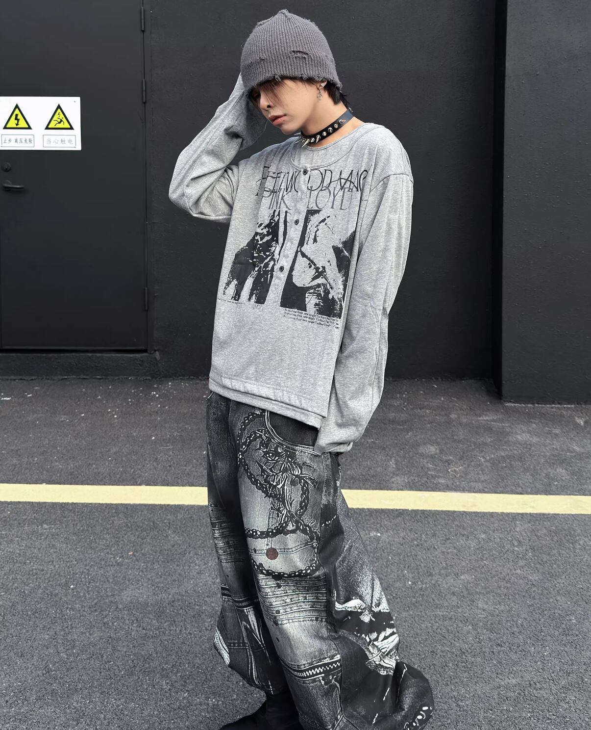 Printed Fake Two-Piece Long-Sleeve T-Shirt 0004