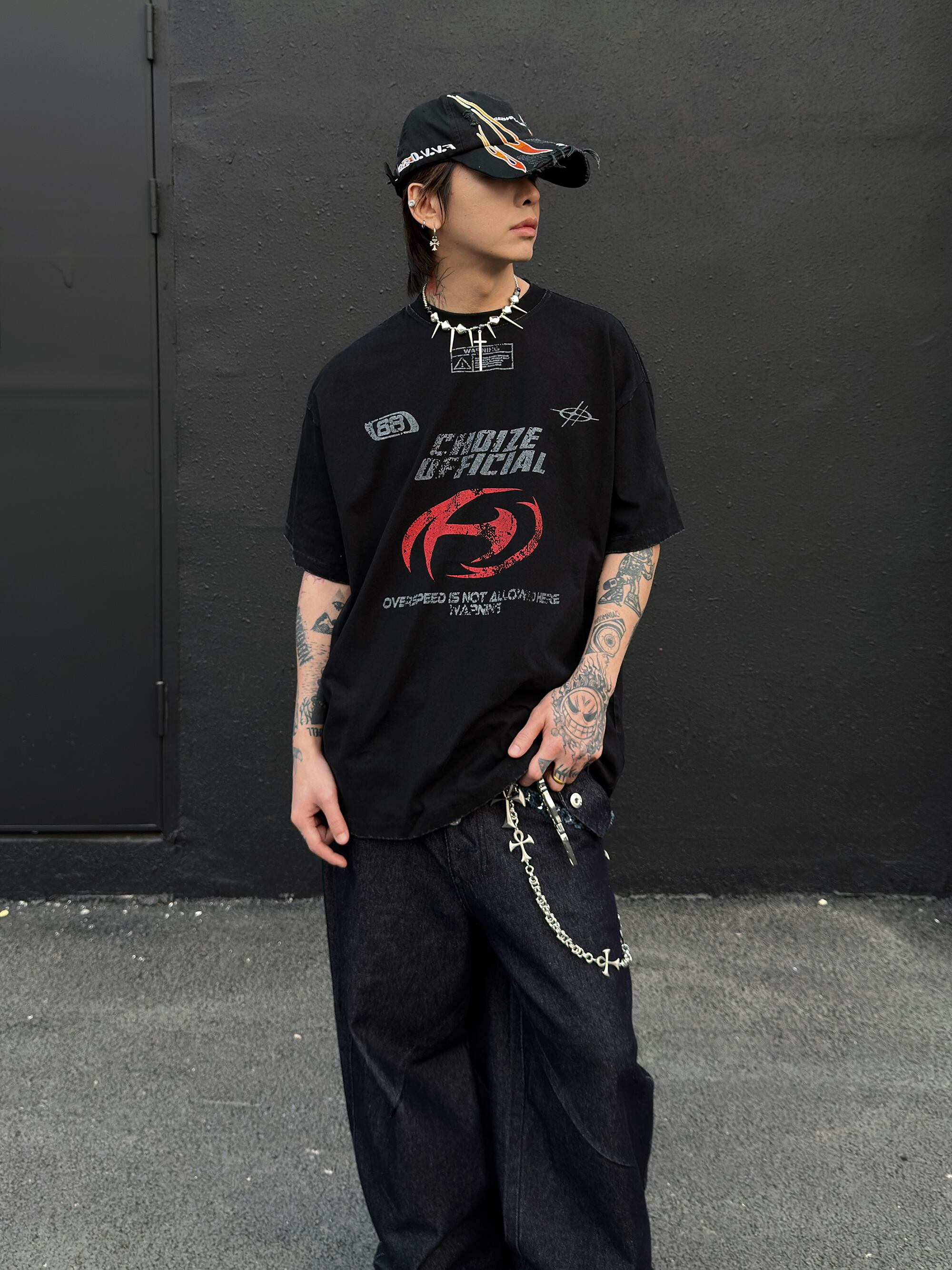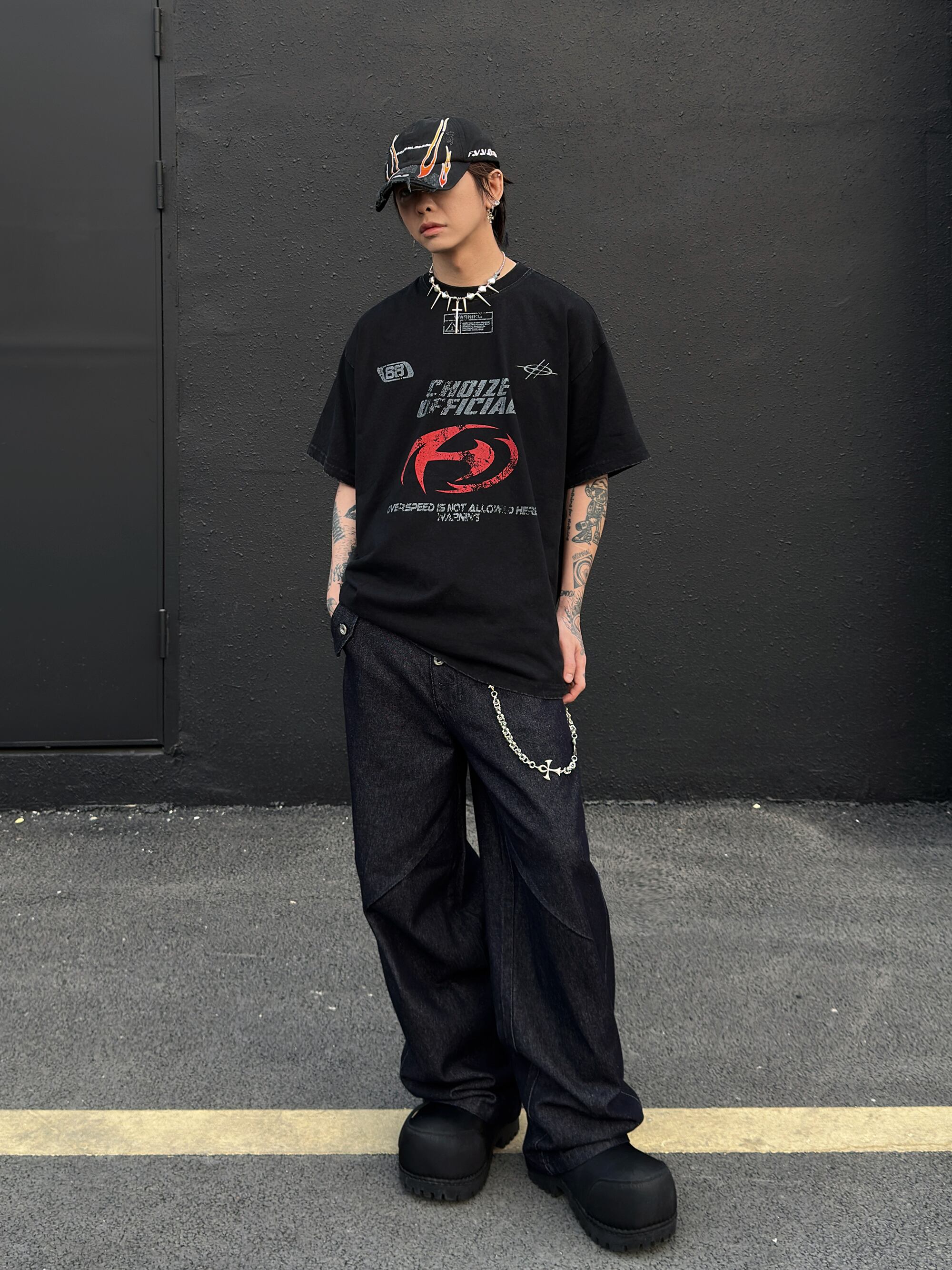 Washed round neck short-sleeved T-shirt 0004