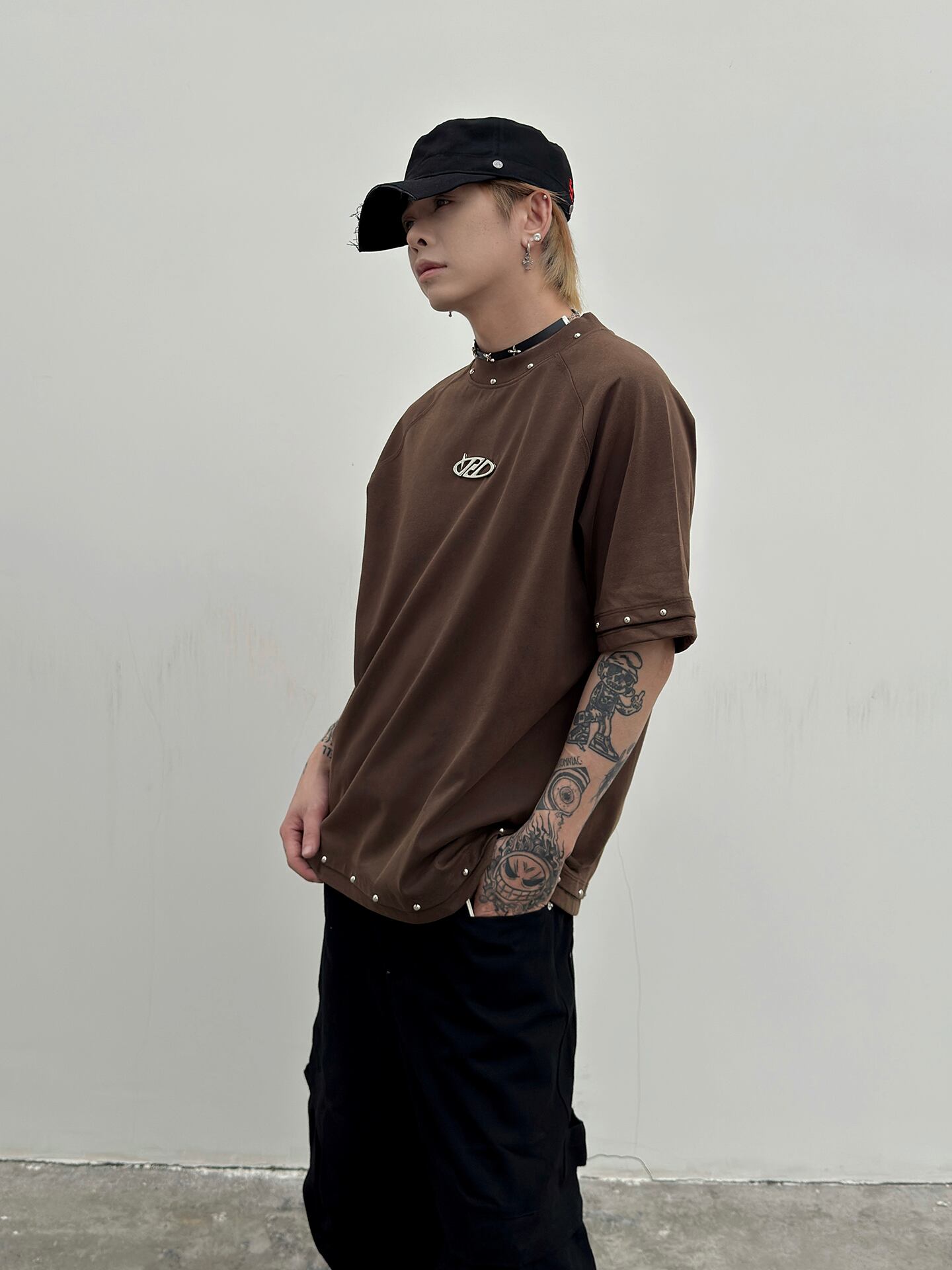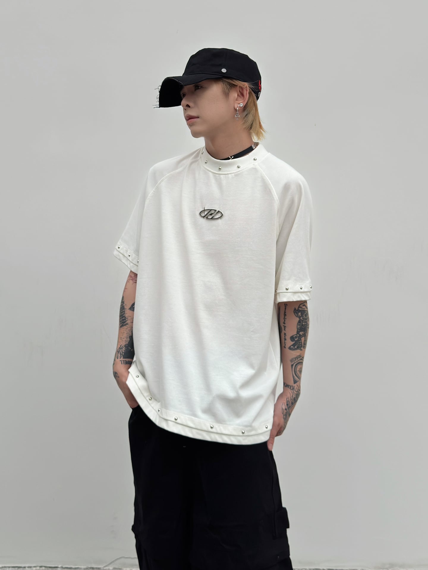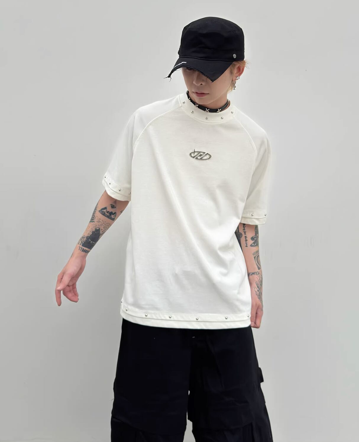 Metal decoration short-sleeved T-shirt 0004