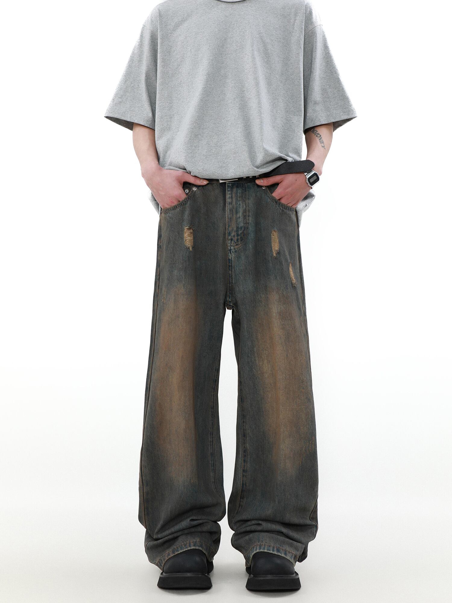 Retro damaged denim pants 0005