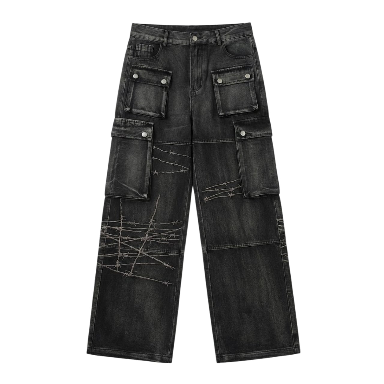 Multi pocket design denim pants 0005